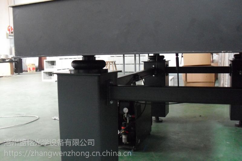 底部支撑采用采用200*200方管焊接成型,内部采用2次膜片气囊,经过小孔阻尼,进入2次气罐使隔震性能进一步得到提高,主要部件采用意大利进口原装部件,底部使用***减震脚垫与地面接触,使设备更稳定,固有频率垂直1.0-2.1Hz 水平1.0-2.3Hz。振幅不大于1.2um ,复位精度正负0.1mm ,上部与平台接触面,为铝棒并有橡胶垫隔离,起到与底腿隔离不导磁。